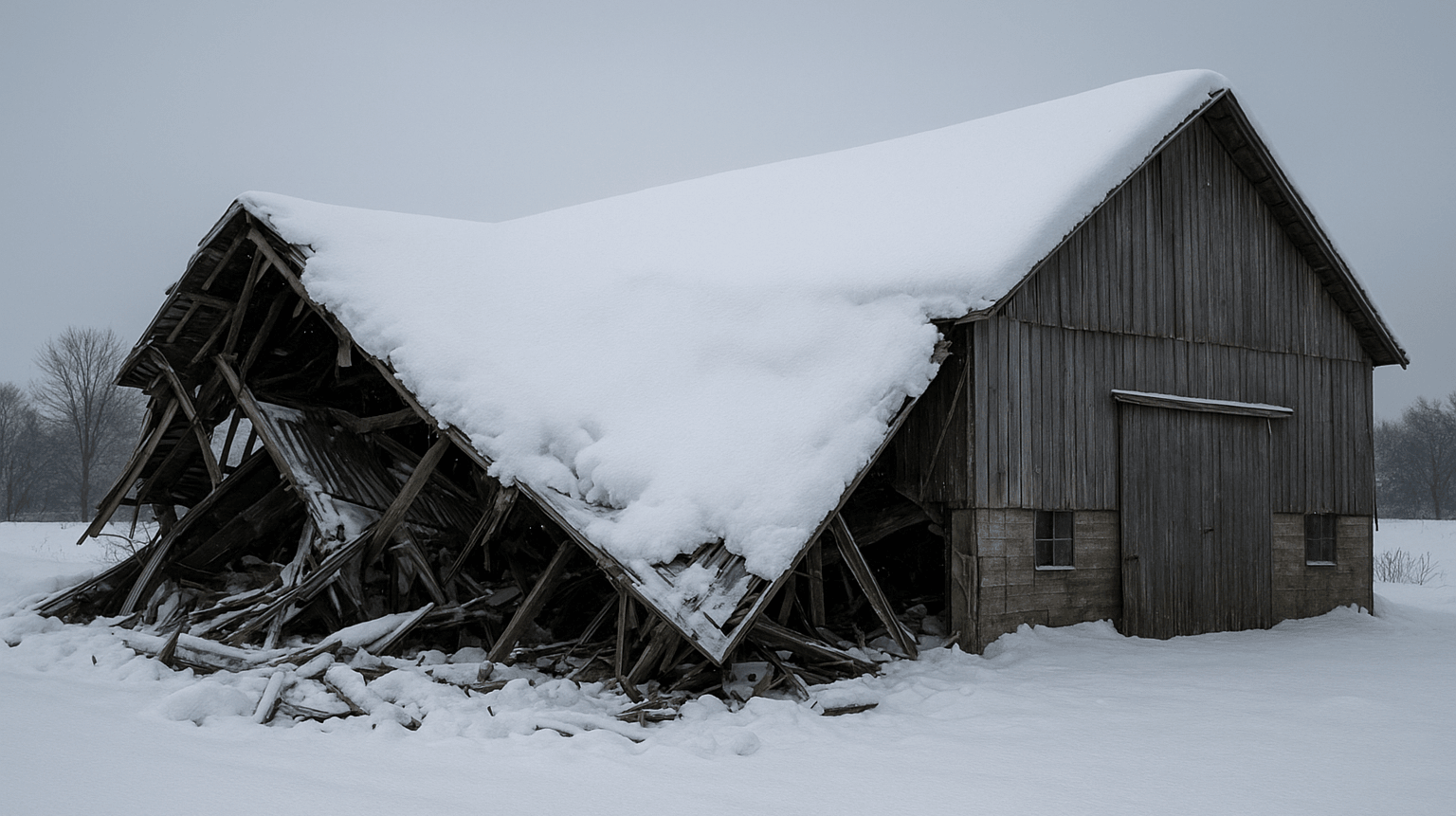Dégâts sur toiture dus à la grêle ou effondrement à cause du poids de la neige.